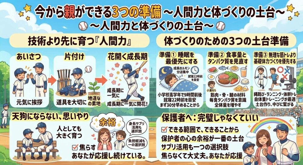 その土台となる体づくりのために、今から親ができる準備が3つあります。