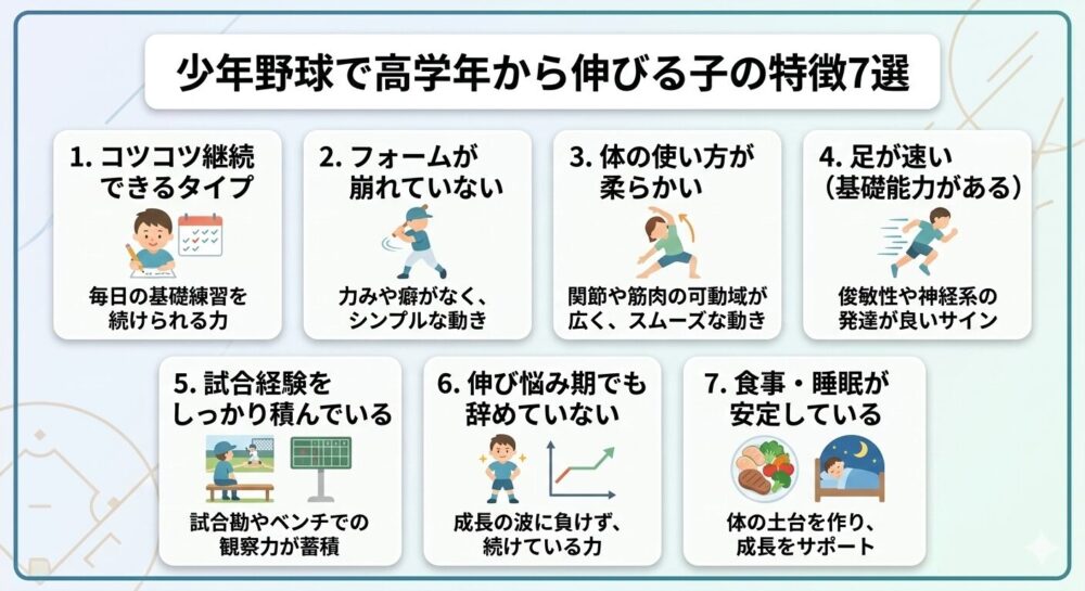 この記事では、少年野球で高学年から伸びる子の特徴7つを具体的に解説します。