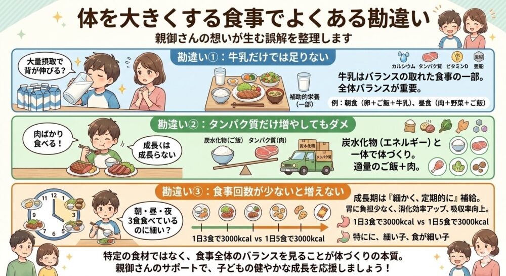 「毎日、朝・昼・夜の3食。でも体が大きくならない」と感じている親も多いです。