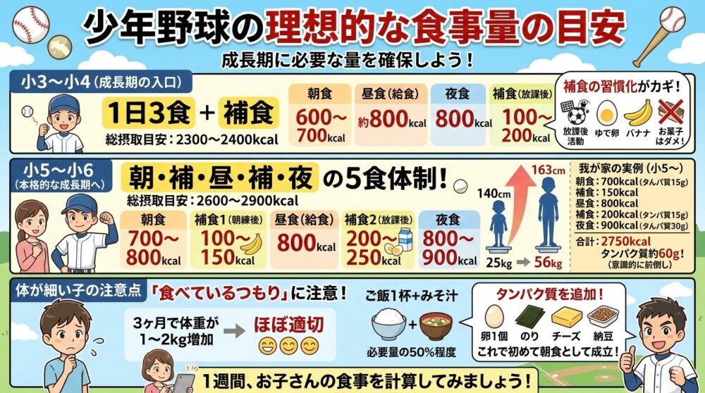 少年野球の理想的な食事量の目安