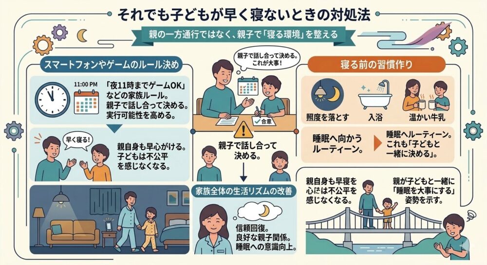 それでも子どもが早く寝ないときの対処法